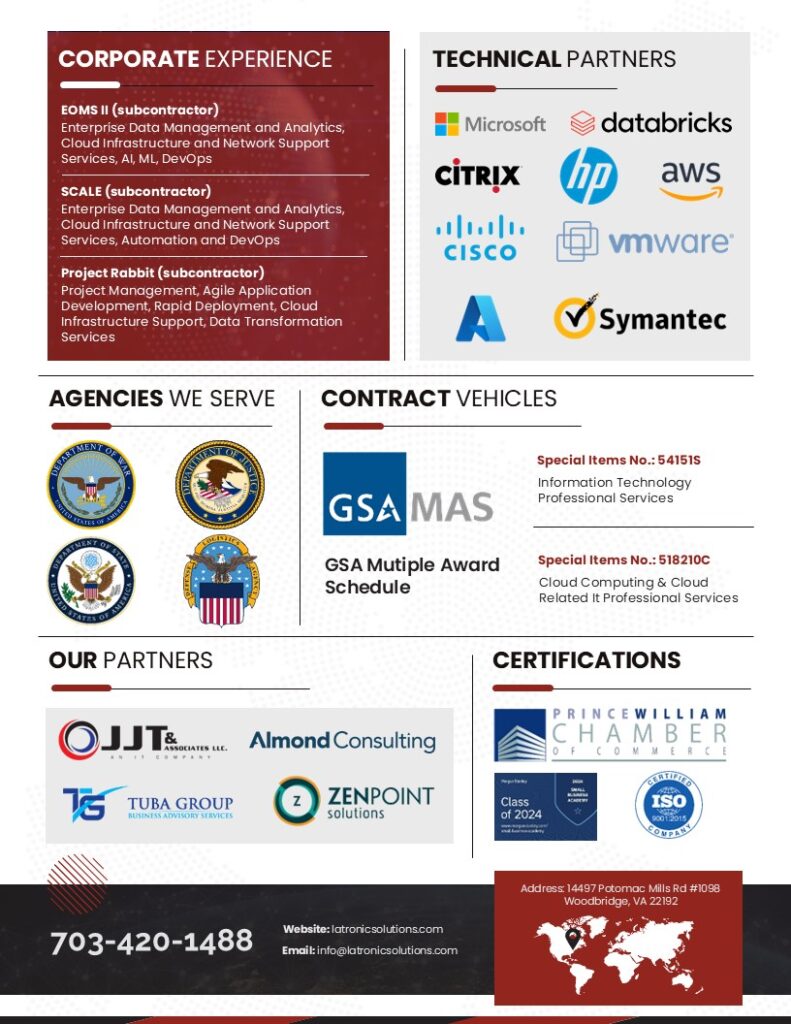 We bring proven experience in program management, cloud transformation, and data modernization — ensuring every initiative is aligned with mission needs and organizational goals.